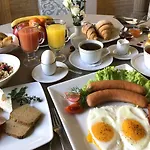 ארוחת הבוקר מוגשת כל בוקר במסעדה.